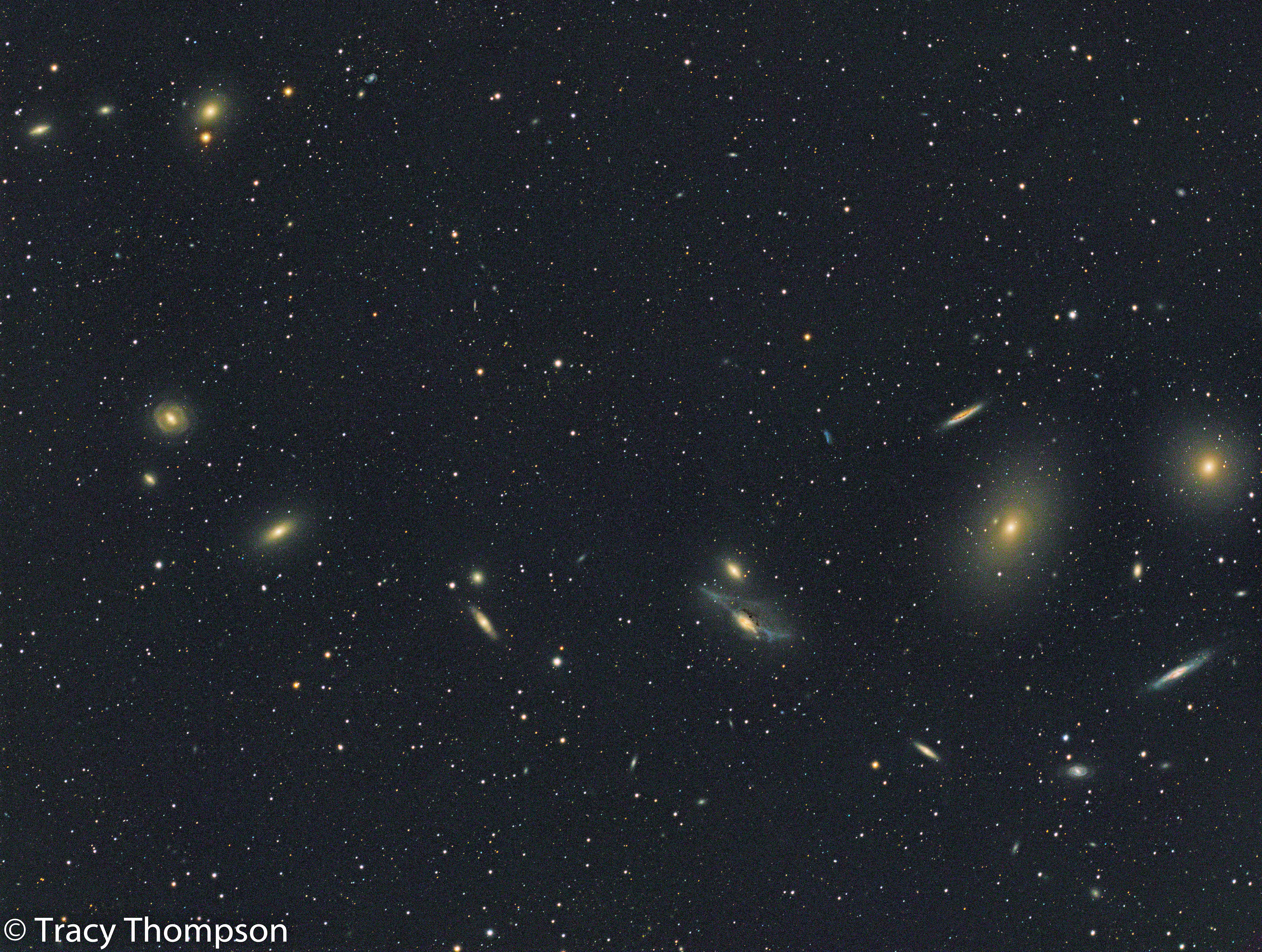 Markarian's Chain Of Galaxy's. From featureless to defined and interacting. RGB and Luminance data.