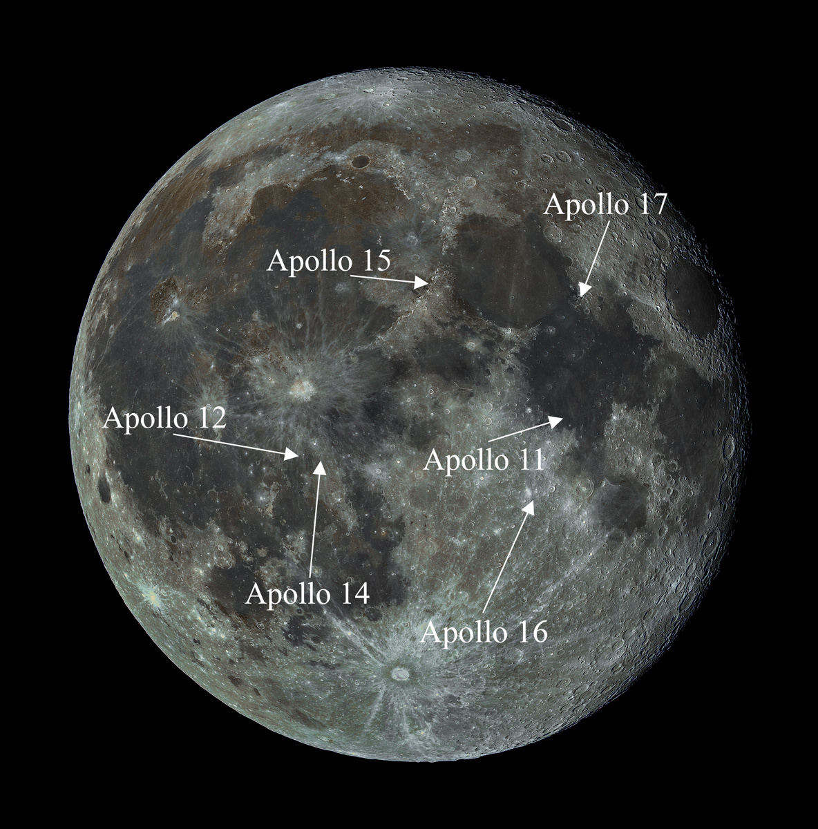 Last image is annotated to show the six Apollo landings.